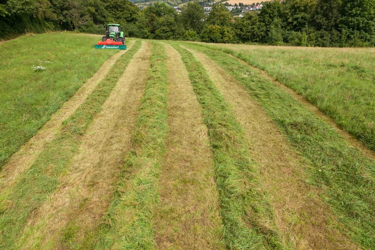 The Kverneland 2832 FS leaves a fluffy box shaped swath, and is not just dropping the mown crop onto the ground.