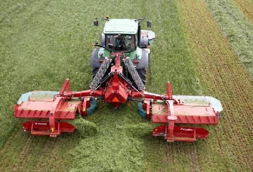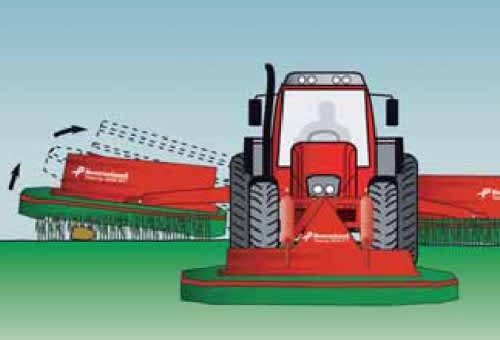 Flexible Butterfly CombinationKverneland offers a top-of-the-line butterfly mower conditioner combination with a 9.00m working width and swath belt. It consists of a 3632 FT or 3636 FT front mounted mower conditioner with 3.16 or 3.60m working width and two rear-mounted 3.16m mower conditioner units. |