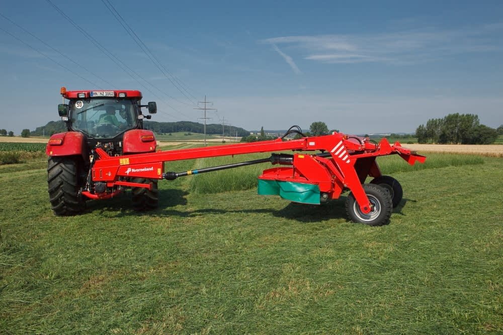 The Kverneland roller versions are equipped with full width chevron rollers, quickly taking the cut crop off of the cutting discs and providing gentle and effective conditioning of fragile crops like lucerne/alfalfa, reducing leaf loss to a minimum.