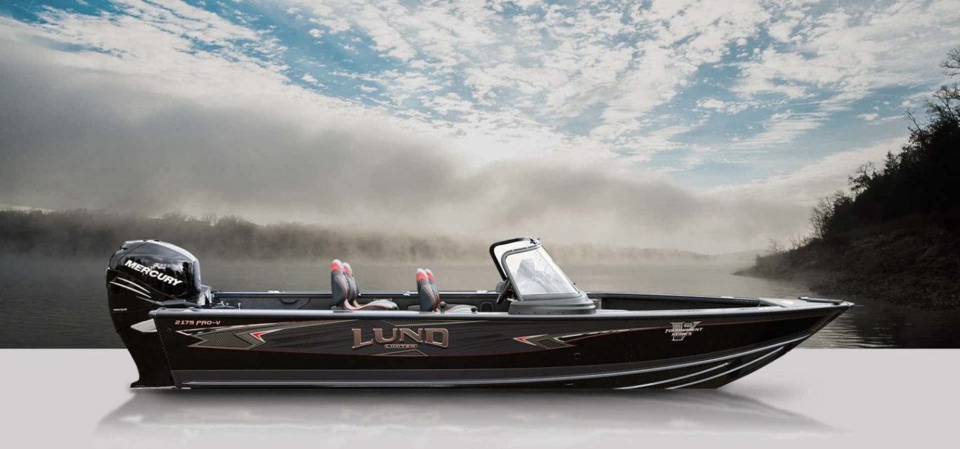 | The Lund Pro V Limited redefines the term ultimate fishing boat. Loaded with exclusive features and premium styling, the new Pro V limited comes with our new Premium Limited graphics package, clear coat paint finish, custom black consoles and windshield frames, Limited Pro-Ride seats with air-ride, Limited upholstery, marine mat, steering wheel, premium audio, Limited custom trailer plus many more great features. See more here. |