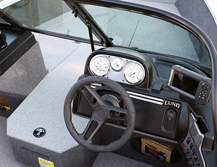 12 V Power Receptacle Cell Phone/MP3 Player Holder Custom Console w/Windshield Custom Dual Consoles w/Walkthru Windshield Flush Mount Horn Full Lighted Instrumentation Interior Lighting Lockable Glove Box Mercury Analog Prerig w/Gauges Navigational Lighting No-Feedback Steering Plug-In Wire Harness |