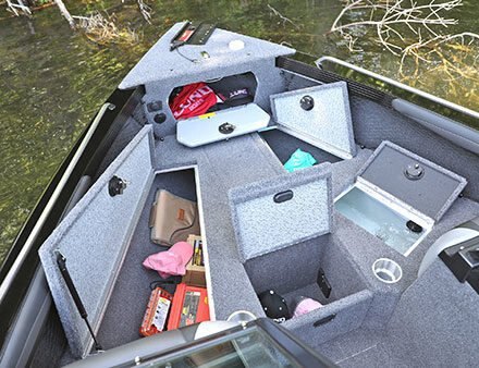 Aft Storage for Sun Top, Complete Top, or Bimini Top Battery Storage Compartments Bow Cargo Net Storage Console Storage Lockable In-Floor Rod Storage Lockable Port Storage Lockable Storage Raised In-floor Center Storage Compartment Storage Compartments |