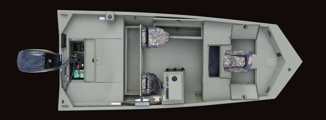 2 Step Strap Ladder with Mesh Bag 6" Black Nylon Cleats Navigational Lighting Olive drab green acrylic paint SportTrak / ProTrak Gunnel Standard Black Bunk Trailer w/Load Guides Transducer Bracket (Welded) Transom Drain Plug Trim Tabs Utility Mod-V Graphics Welded Mod-V |