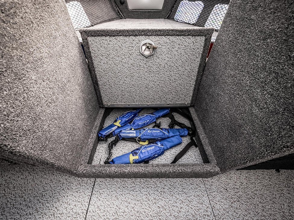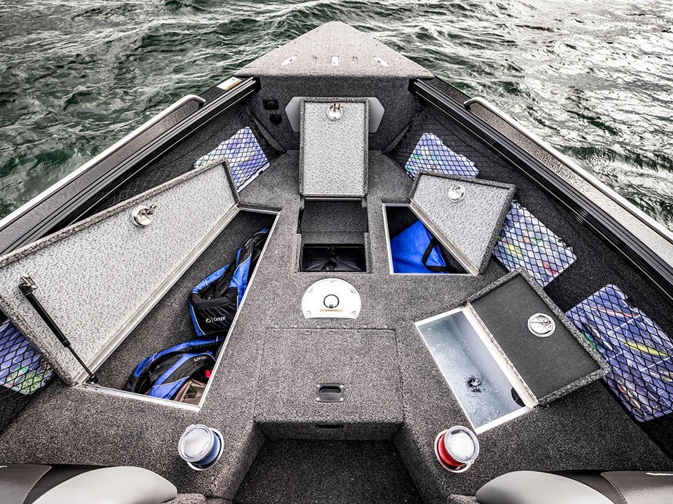 Storage Bow Cargo Net Storage Console Storage In-Floor Battery Storage Lockable In-Floor Rod Storage Lockable Port Rod Locker w/Tubes Lockable Storage Storage Compartments