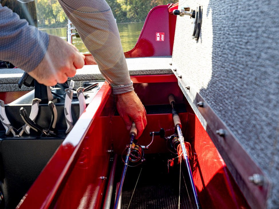 Storage Aft Lockable Battery Storage Lockable Port and Starboard Rod Storage Lockable Storage Compartments Tiller Command Console Storage