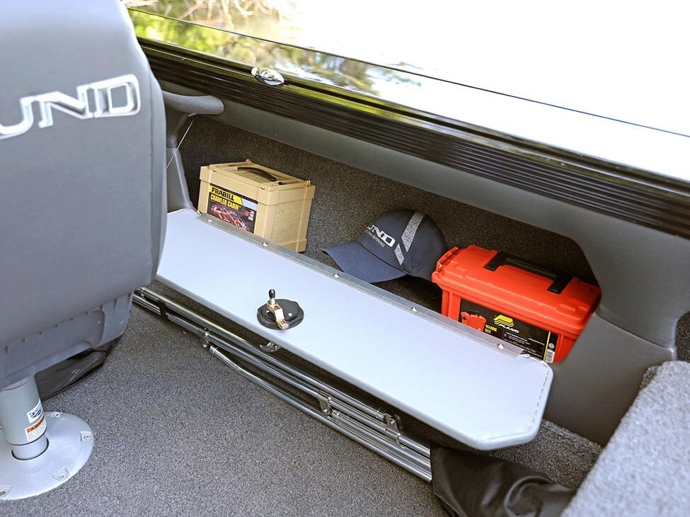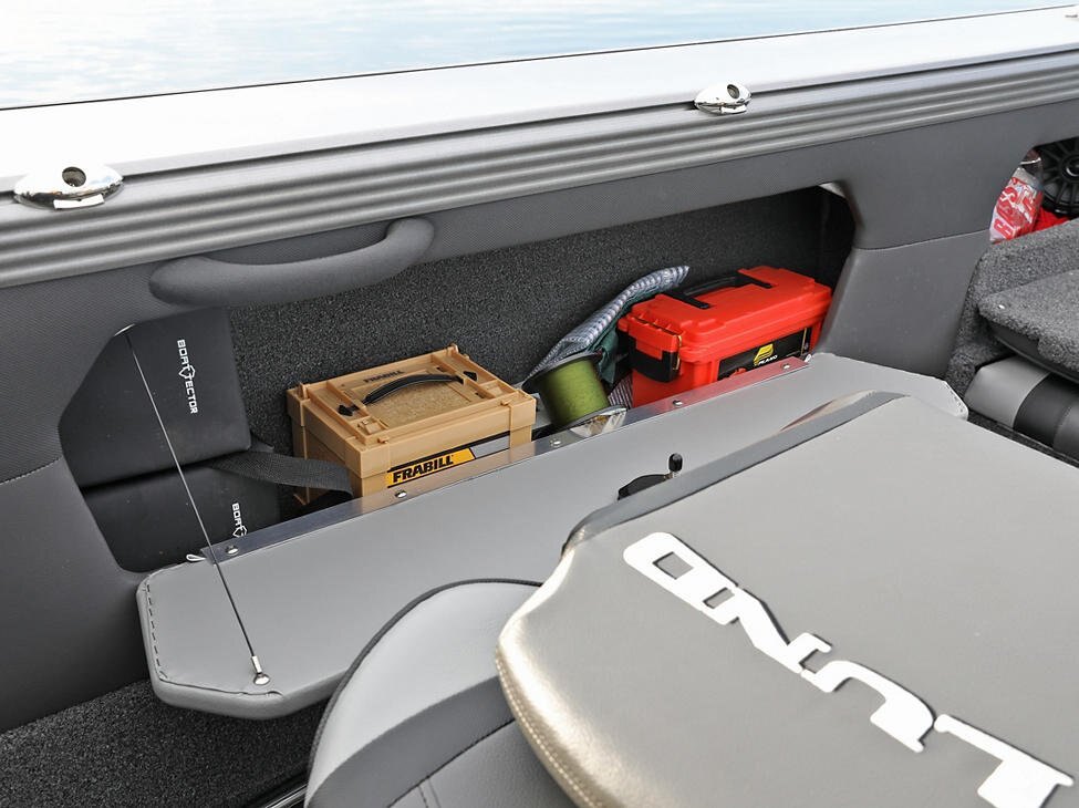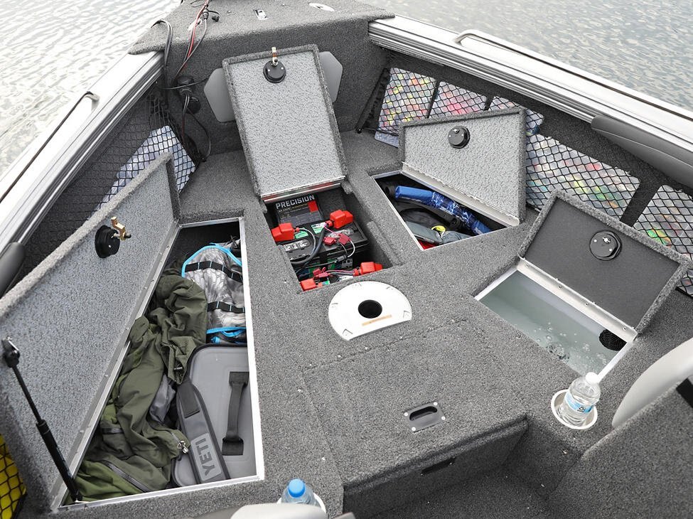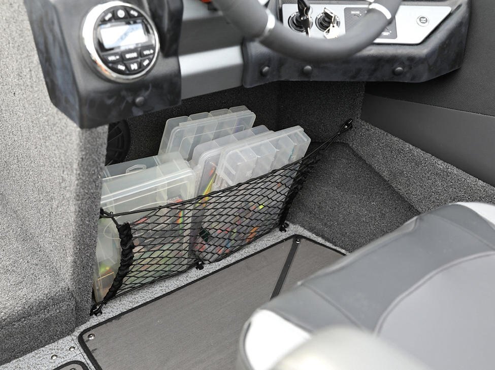 Storage Aft Storage for Sport Top, Complete Top, or Bimini Top Battery Storage Compartments Bow Cargo Net Storage Console Storage Lockable In-Floor Rod Storage Lockable Port Storage Lockable Storage Raised In-Floor Center Storage Compartment Storage Compartments