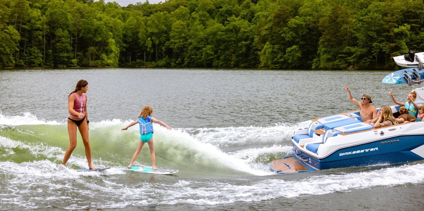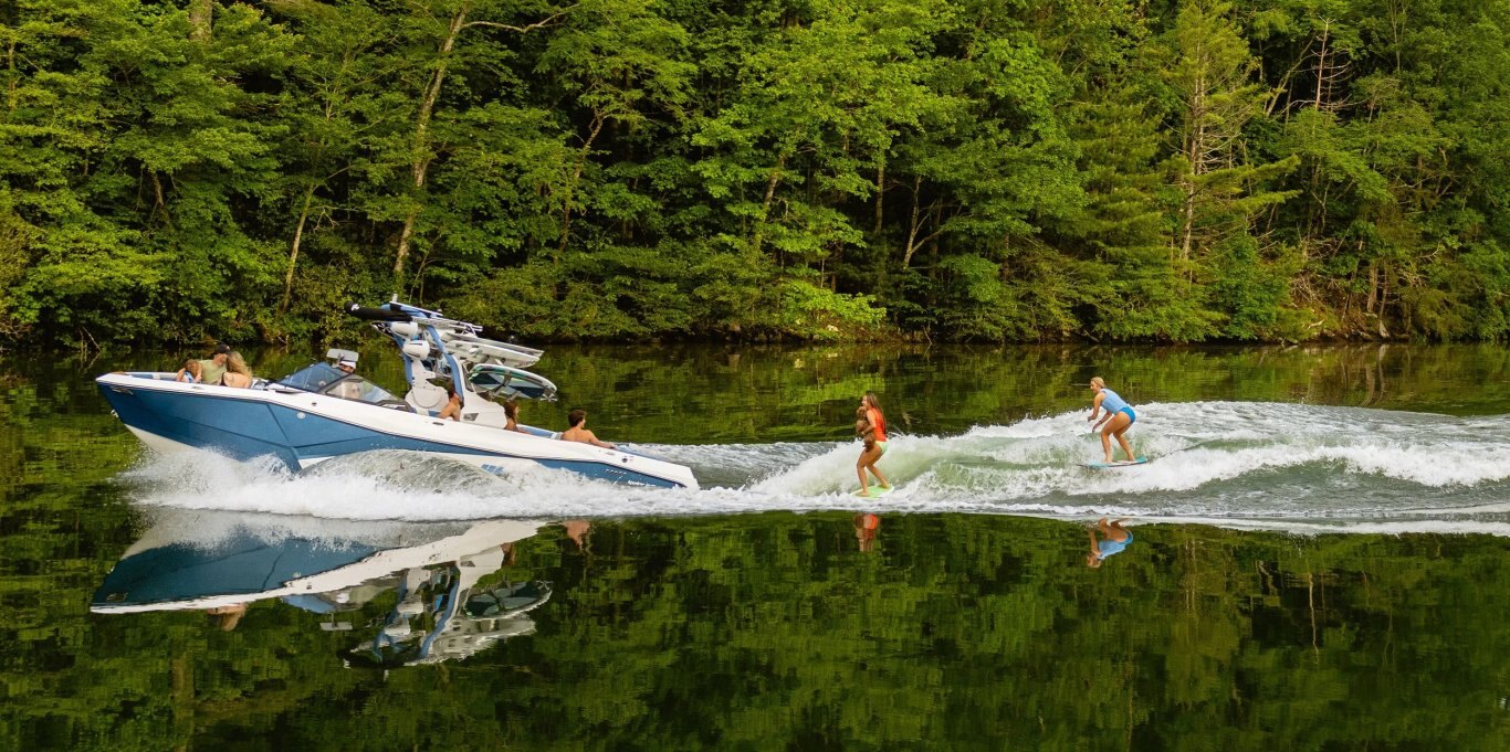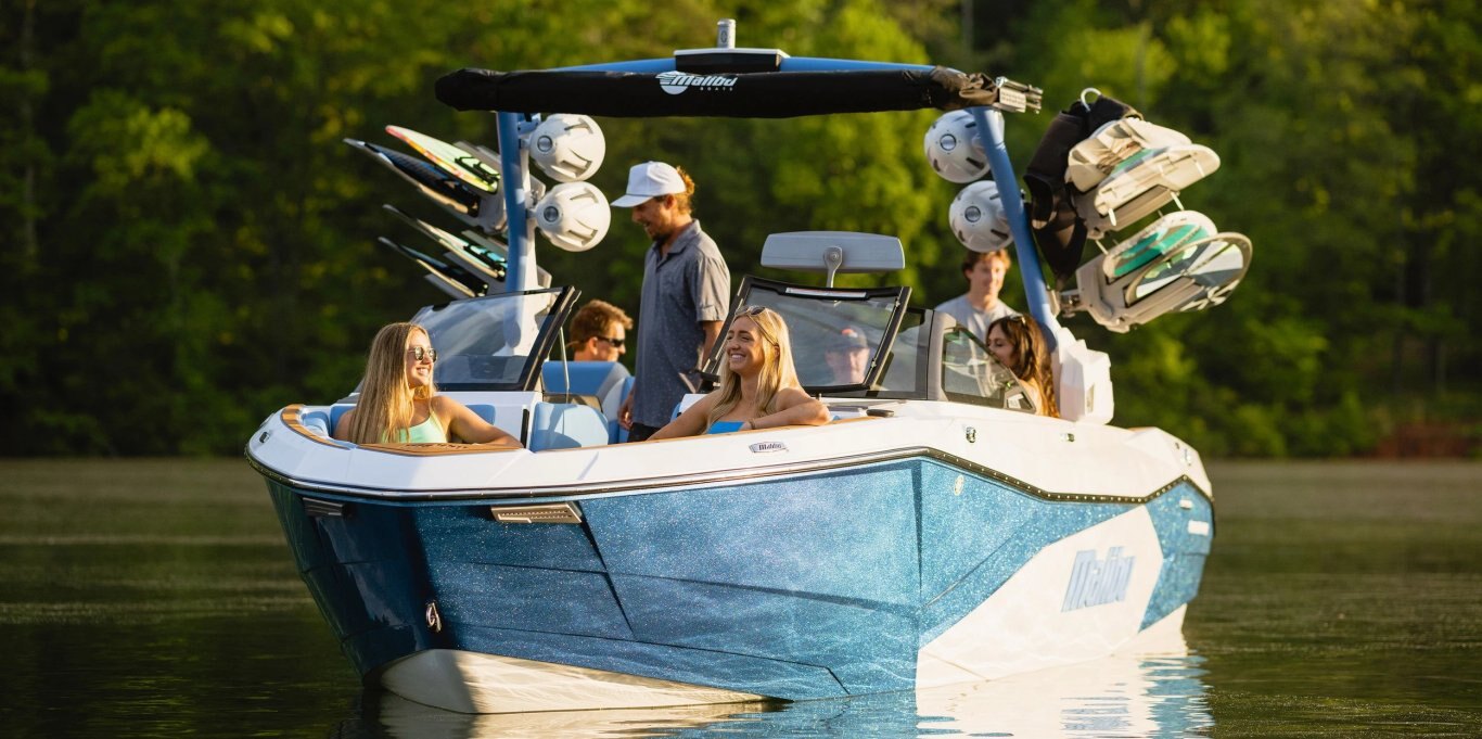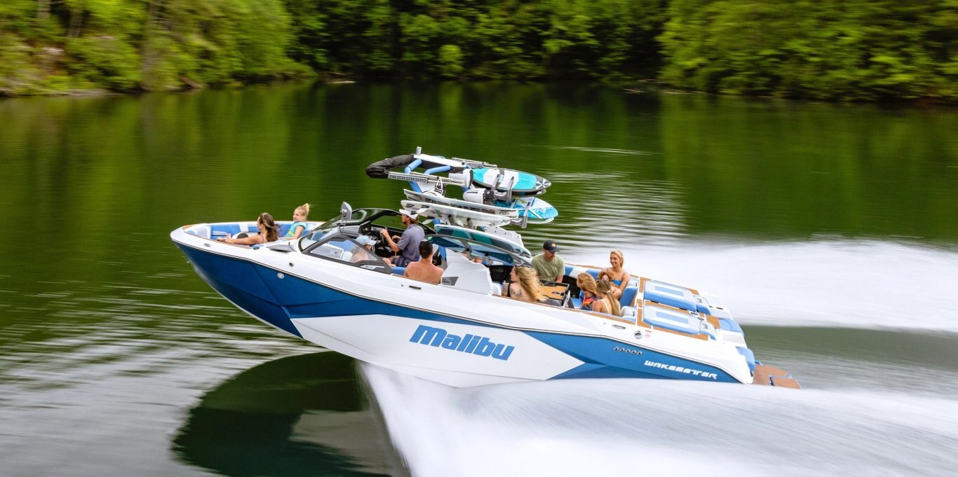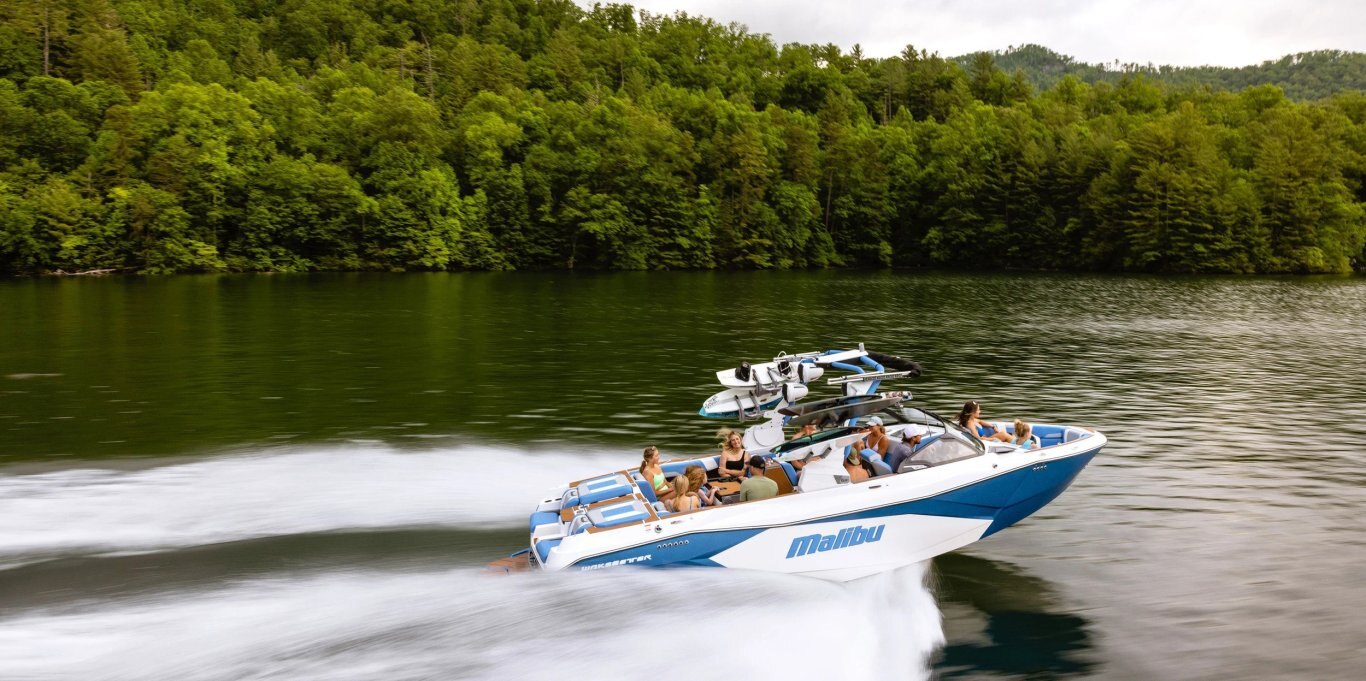 Sitting at 26 and a half feet long, the Malibu Wakesetter 26 LSV is the largest Malibu Boat ever built. With over 6,000 pounds of ballast and extra customization that comes with Surf Gate® and Power Wedge® III, the 26 LSV leaves plenty of room to play with a big pocket and perfect wave on both sides. Home to all the luxurious amenities you need for endless summer lake days, the 26 LSV boasts plush seating and storage for up to 18 people. Packed with the latest features to maximize your spacious interior — including the MaxPivot Seat™ and the port side cooler storage locker — the 26 LSV is just begging to be lounged in after a refreshing afternoon swim at the cove or sunset cruise to dinner.