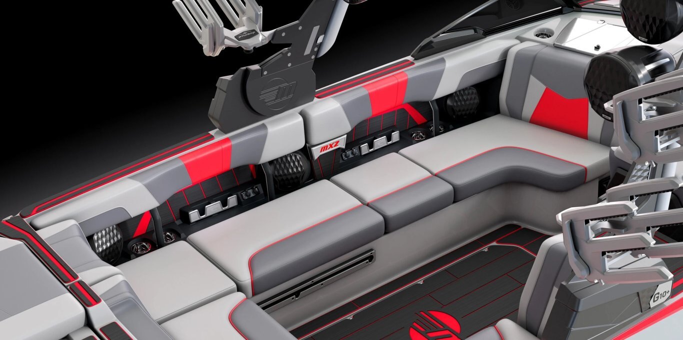 Known for its world-class wakes and waves, sharp head-turning profile, and maximized comfort, the Malibu Wakesetter 24 MXZ is the most premium & spacious 24-foot boat in the industry. With plenty of storage that runs from bow to stern, customizable lounge seating, and the most spacious bow area in the Malibu line-up, the 24 MXZ was built to impress your 17-person crew. And, not only does the 24 MXZ boast powerful performance behind the wheel, but thanks to the industry’s most awarded surf system, the 24 MXZ generates perfectly symmetrical wakes & waves for every rider with endless customization options.