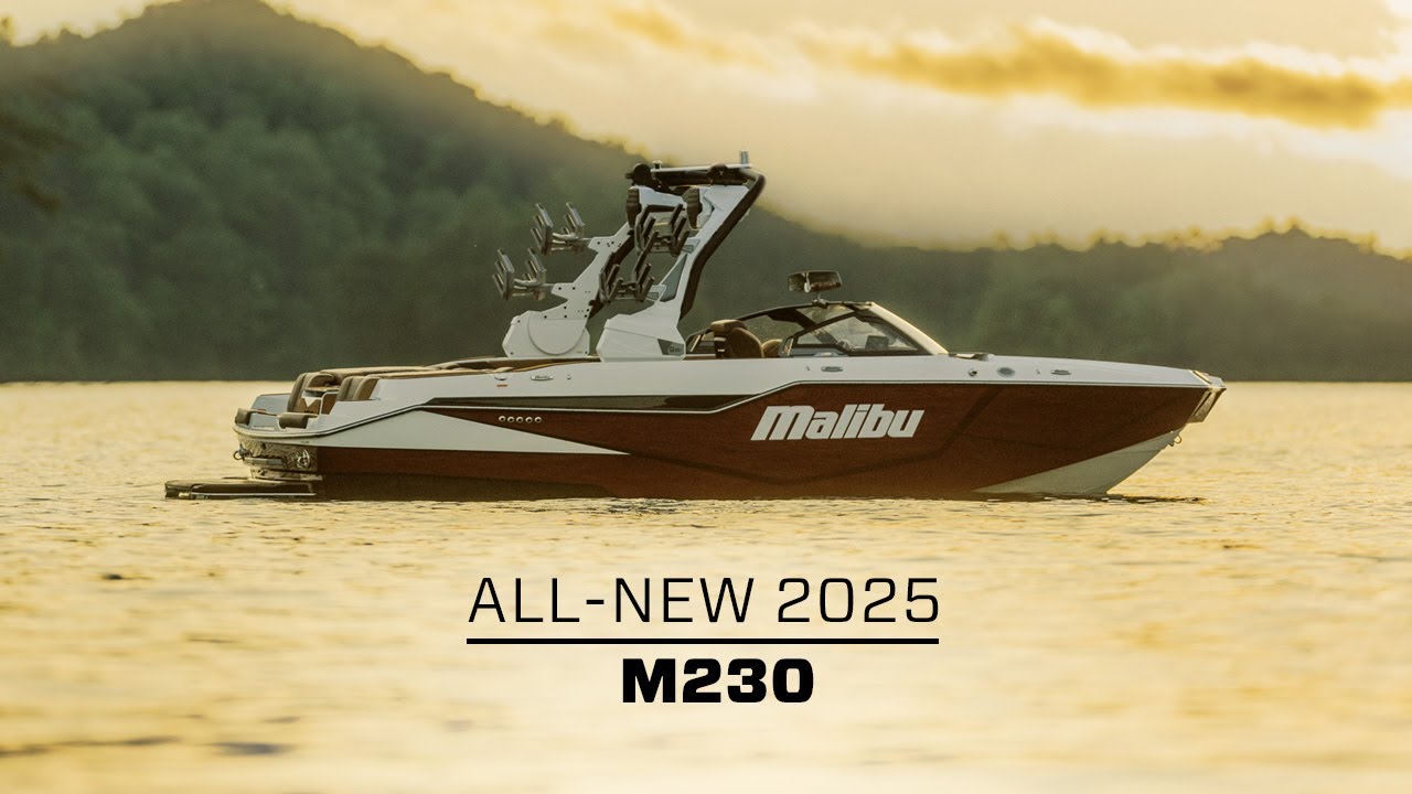 The all-new Malibu M230 was handcrafted to deliver the most premium on-water experience both in and behind the boat. Featuring the striking M-Series profile and elevated freeboard, the M230 offers an expansive feel on the water, providing ample space for more passengers, more ballast, and more storage — all without sacrificing your performance. Engineered for flawless performance, Surf Gate® Fusion is integrated into the M-Line Hull for an ultra-sleek exterior profile & the cleanest surf swells in the industry. Step aboard, and you'll find Malibu's greatest innovations and thoughtful touches everywhere you look including the G10+ Tower™, Raise & Laze™ Arm Rest, all-new walkthrough bow design, Max-Relax™ Sundeck Loungers, and custom three-layer softgrip. One look at the M230, and you'll see why it's the newest premium leader in its class.