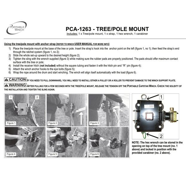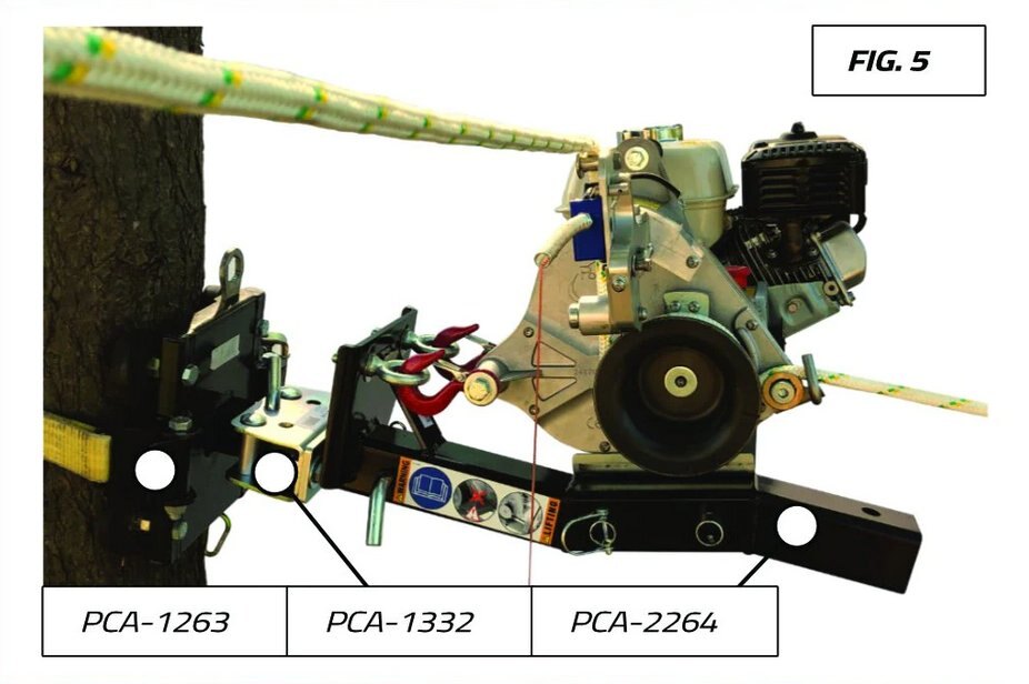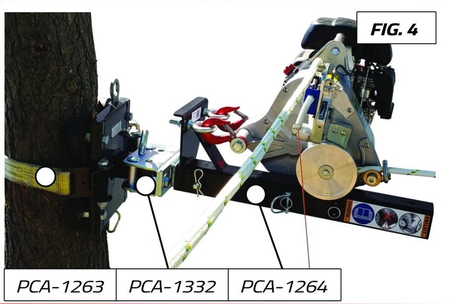 Tree-Mount Winch Anchoring System with Rubber Pads The anchoring system provided offers a secure method for mounting the winch onto trees or poles, enabling more comfortable working heights and facilitating extended use from a fixed position. It serves as the foundation for various accessory combinations (refer to figures above) and features four rubber pads that prevent slipping and protect tree bark. Note: This system is not intended for standalone use and must be combined with other accessories. The PCA-1263 offers different combinations of accessories depending on the application and environment (see figures above). Compatible with the following winch models: PCW3000-Li, PCW3000, PCW4000, PCW5000, and PCW5000-HS. |
