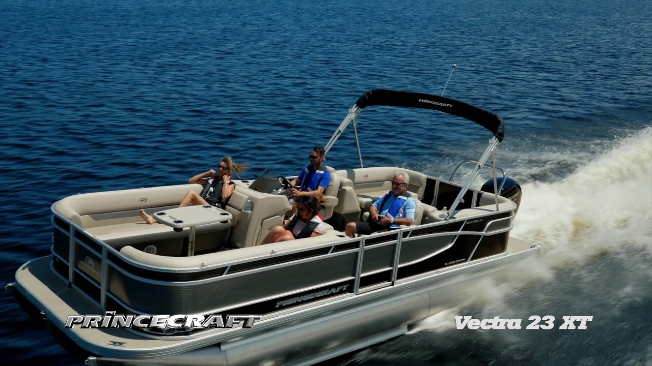 | If you are looking for a top quality, affordable pontoon boat, with a lot of space to accommodate up to 12 people and that will let you practice all your favorite water sports, look no further than this Vectra 23 XT. With chaise lounges, a radio, a 12 volt outlet, a swim platform, and much more, you will appreciate the simplicity and practicality of this. This 23’-6’’ pontoon boat can accommodate an engine ranging from 40 to 115 HP, even 150 HP with the optional Speed or Sport Configurations. |