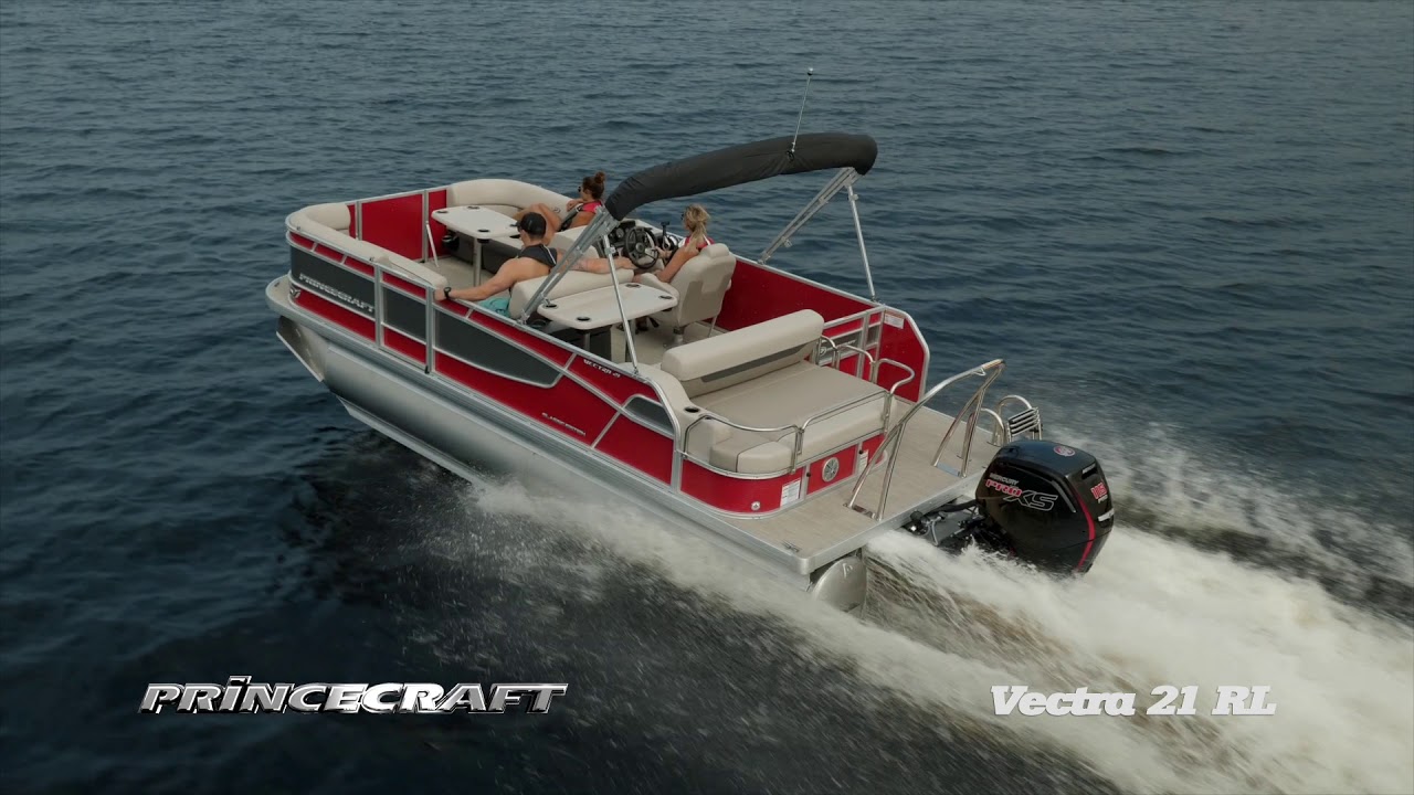 | If you are looking for a top quality, affordable pontoon boat, with a lot of space to accommodate up to 10 people and that will let you practice all your favorite water sports, look no further than this Vectra 21 RL. With a chaise lounge, a large sundeck, a radio, a 12 volt outlet, a swim platform, a large table and captain passenger seat, and much more, you will appreciate the simplicity and practicality of this. This 21’-6’’ pontoon boat can accommodate an engine ranging from 40 to 115 HP, even 150 HP with the optional Sport Configuration. |