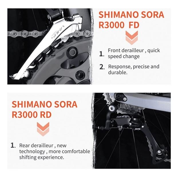 Powerful Performance & Speed 2x9 Shimano SORA Derailleur System,