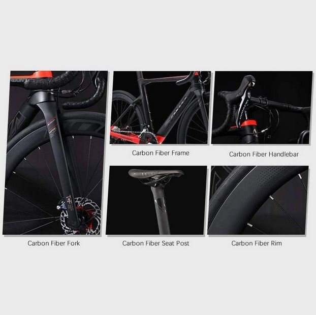 Full carbon fiber made. It's a lightweight and stiff carbon road bike at 8.7kg. Internal cable laying design, tide and beautiful. Coaxial design is more stable during riding. |