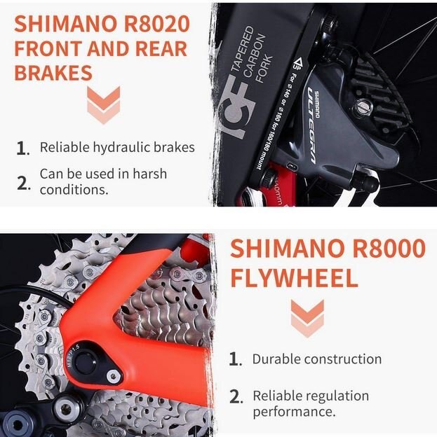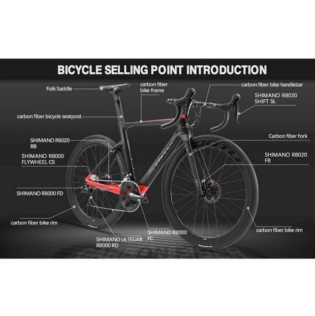 Experience unrivaled performance with the SAVA Meteor 8.0 Full Carbon Road Bike. Crafted with a cutting-edge T800 carbon fiber frame, fork, handlebar, seatpost, and wheels, this bike offers optimal strength, agility, and speed. Equipped with a precise 22-speed system and the renowned Shimano Ultegra R8000 Groupset, every pedal stroke is a symphony of efficiency. Feel confident and in control with the hydraulic disc brake system, providing reliable stopping power in all conditions. Elevate your cycling experience with the SAVA Meteor 8.0, where technology, craftsmanship, and performance meet.