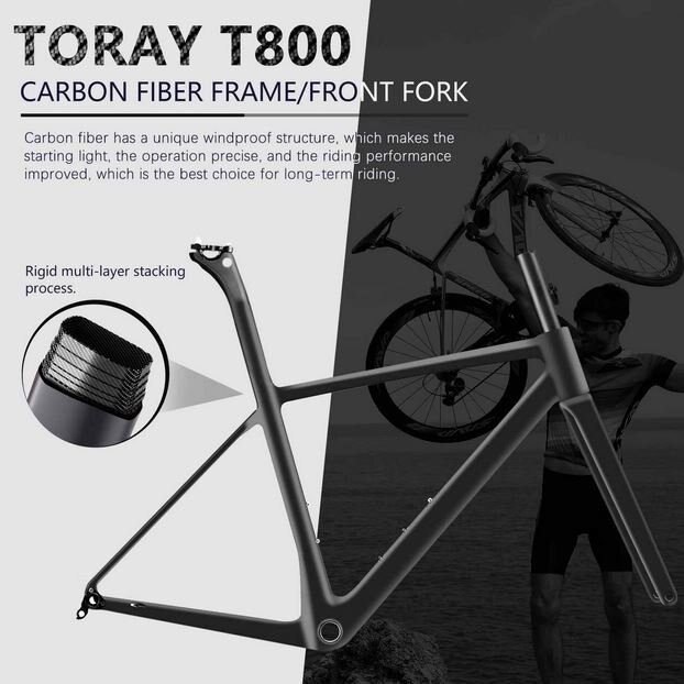TORAY T800 Carbon Fiber: We use high quality Japanese Carbon fiber frame, wheelset, fork, handle bar and seat post. Provides an ultra-light carbon road bike at about 7.9 kg (17.4lb). (The new frame for the model in 2021 is a new design, which is different from the old model. )
