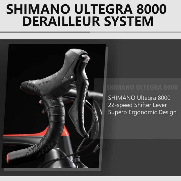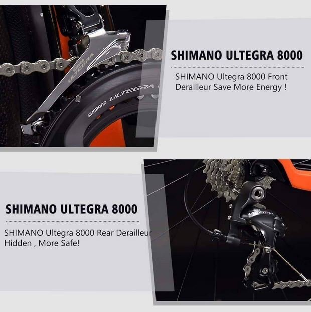 SHIMANO Ultegra Group Set- SHIMANO Ultegra 8000 2*11 Speeds with Shifter lever, Front derailleur, Rear derailleur, V Brake, 50-34T*170mm Crankset and 11-28T Freewheel - It enables you to start and operate your ride effectively, smooth shifting and durable. |