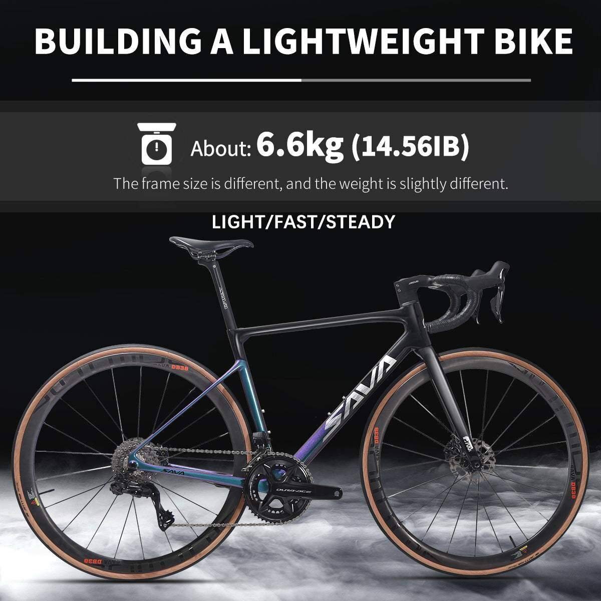 SAVA FALCON full carbon electric road bike crafted from T1000 full Carbon and weighing in at only 6.59kg, this bike features a top-spec racing car that is both stiff and aerodynamic. Enjoy instant shifting thanks to the SHIMANO Dura Ace Di2 R9270 groupset and excellent stopping performance with hydraulic Dura-Ace disc brakes. Plus, with all internal wiring and a one-piece carbon fiber handlebar, you’ll experience minimal resistance and maximum control. Upgrade your cycling game with the SAVA FALCON electric shifting carbon road bike today.