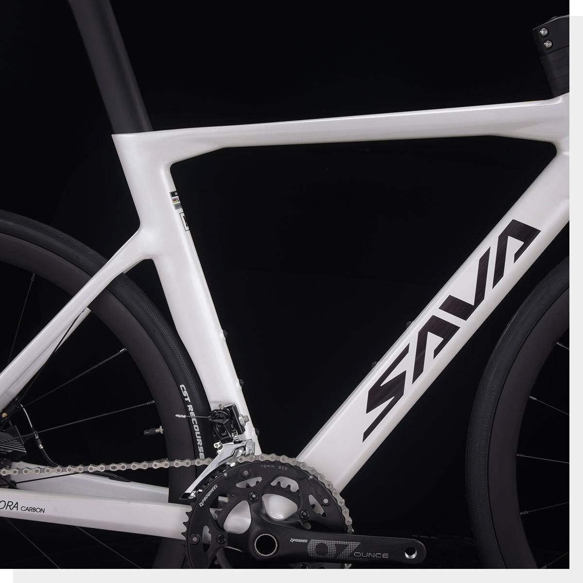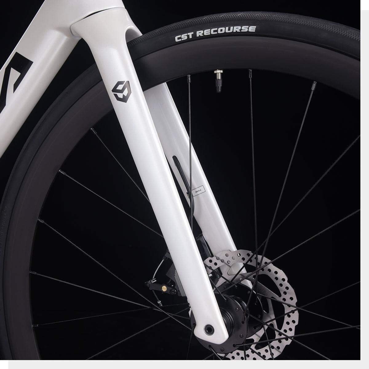 The Aurora SR6.2 Disc Carbon Road Bike boasts a T800-grade carbon fiber frame, fork, seatpost, aluminum alloy handlebars, wheelset, Shimano 105 R7000 22-speed drivetrain, and reliable mechanical disc brakes, delivering a high-performance ride with precision and agility on 700C*28C tires
