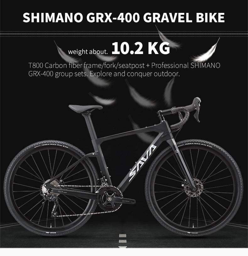 SAVA HULK carbon gravel road bike with Shimano GRX 400 is a high-performance bike designed for off-road riding and gravel adventures.made of T800 carbon fiber frame,which is lightweight,Stiffness,durable .Equipped with Shimano’s GRX 400 groupset, it provides reliable and smooth shifting, making it ideal for tackling challenging terrain. The bike’s rugged frame and durable components are built to withstand the rigors of gravel riding, while the wide tires provide excellent traction and stability on loose surfaces. Whether you’re looking to explore new trails or take on challenging off-road terrain, a gravel bike with Shimano GRX 400 is a top-of-the-line option that delivers a comfortable and efficient ride, even on the roughest terrain.