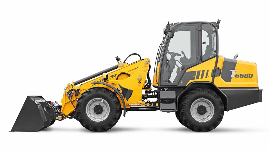 Deutz Turbo Intercooler diesel engine, 4 cylinders, water-cooled, 100 kW (136 HP), Tier 4 final DOC and SCR for compliance with Stage IV final emissions standards Hydrostatic four wheel drive with automotive control Tyres 460/70R24 AS, offset -50 HTF (High Traction Force) Hydraulic quick gear 20 km/h switchable under load Load-Sensing working hydraulics, 145 l/min. Flow sharing working hydraulics incl. proportional control of the telescopic arm ZF planetary axles (Heavy Duty) with self-locking differentials Rear pendulum axle Ferro-form sliding elements in the telescopic arm Tool cylinder in the telescopic arm Electric pressure relief of hydraulic couplings Combined oil cooler Hydraulic fan drive SCV-Plus-Cabin (Silence, Comfort, View) Multiple disk brake, maintenance free; service and parking brake Maintenance free articulation joint 2 steering cylinders 2 x working headlights front und 1 x rear Lighting system without ABE (General approval certificate) according to ordinance StVZO Z-bar boom with parallel lift Additional control device electrically switchable on joystick Depressurised return Steering column adjustable in length and angle Operating hours meter, rev counter, fuel and temperature gauge, engine monitoring Adjustable armrest Rear weight end plate and towing hitch Main battery switch Cyclone Headstock type wheel loader with hydraulic tool lock