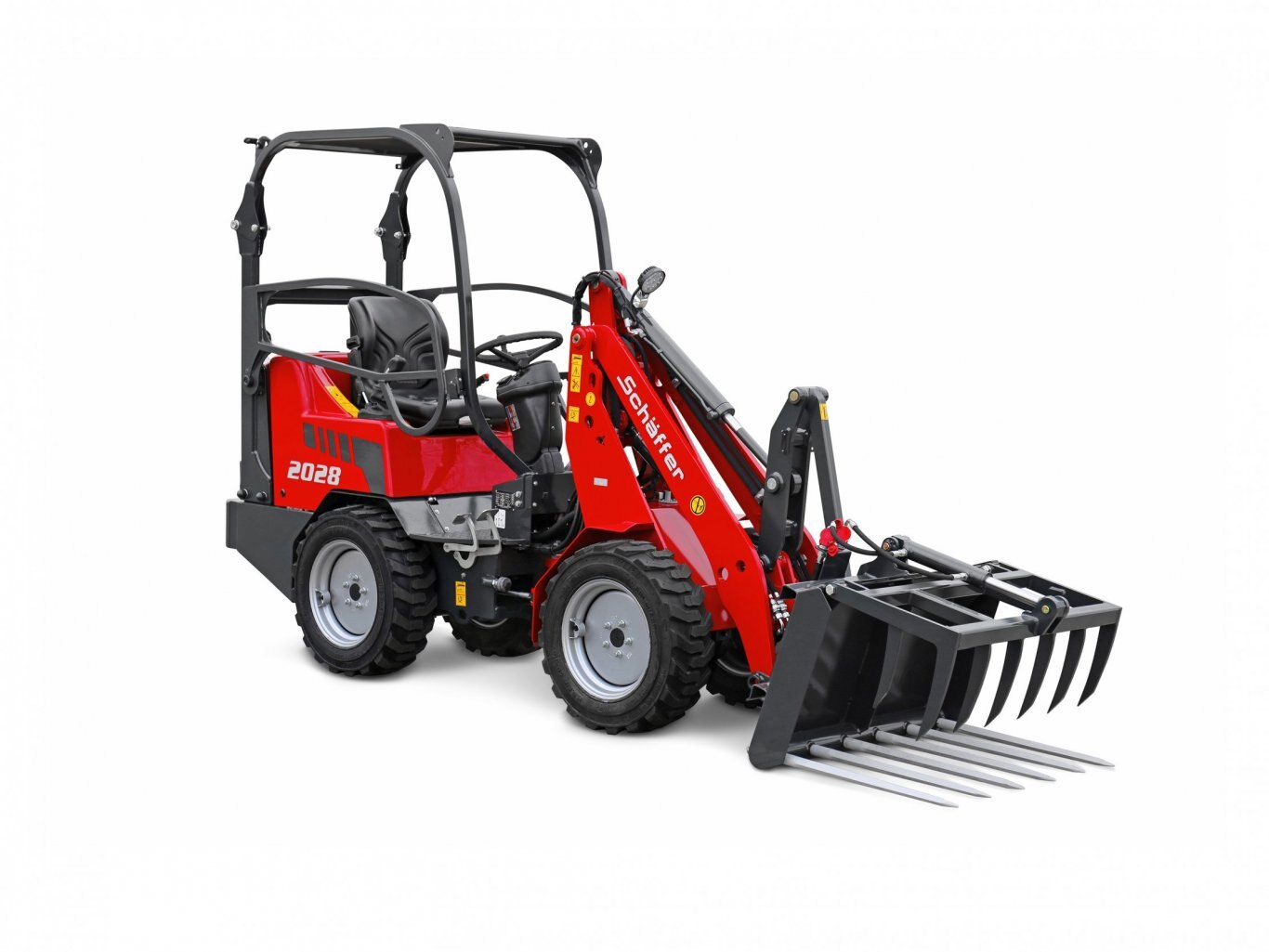 Traction hydraulics: Hydrostatic-automotiv Axles: Original Schäffer axles, 5 wheel nut rim Speed: 0 - 15 kph