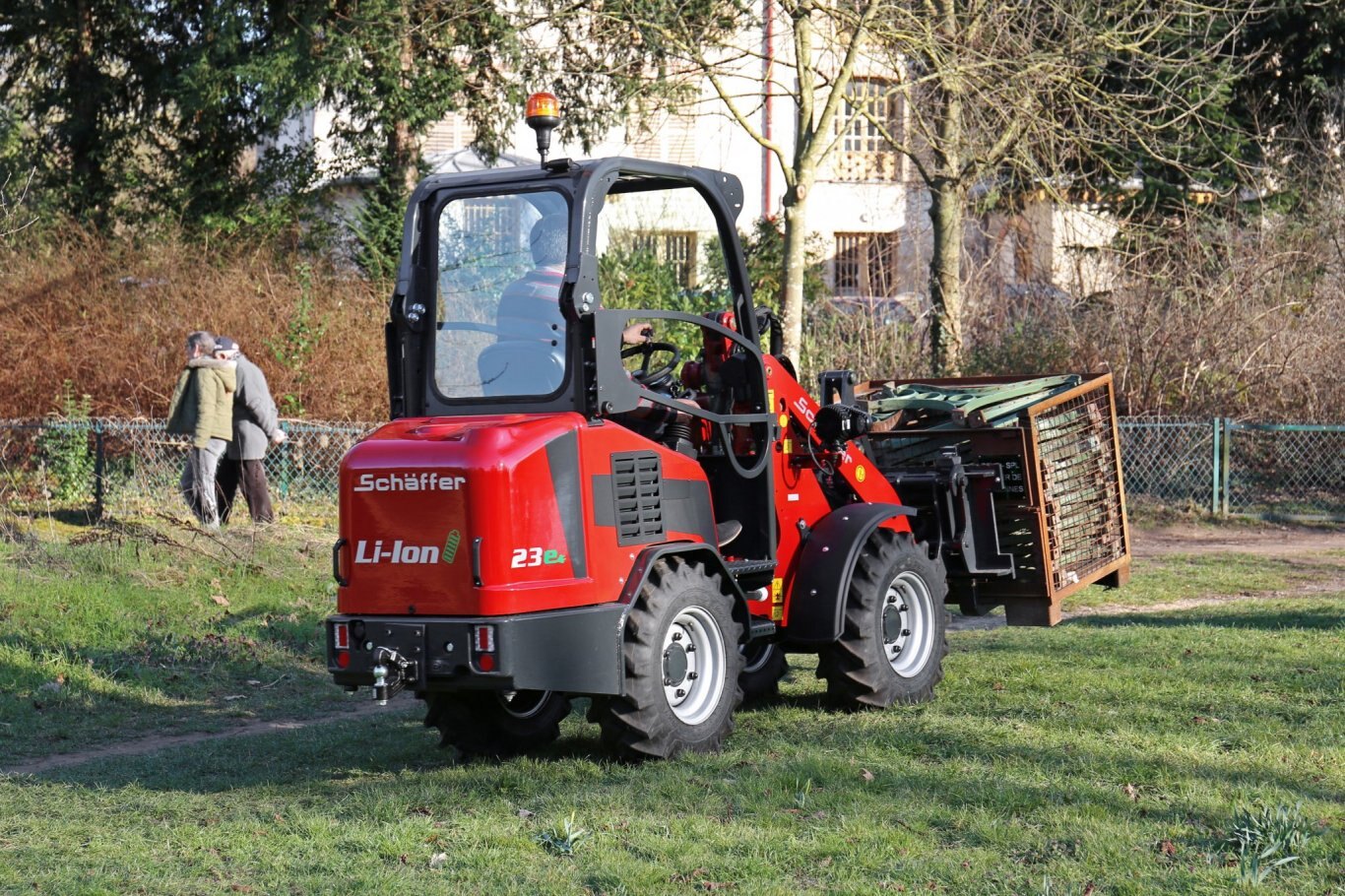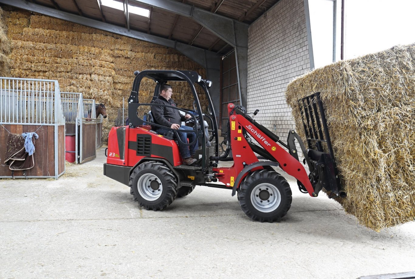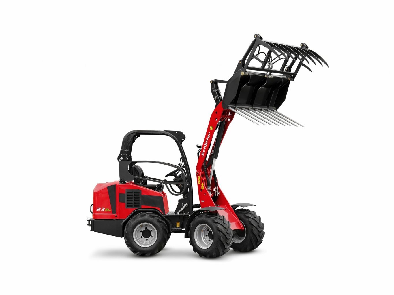 Traction hydraulics: 4-wheel-drive, fully electric Axles: Original Schäffer axles, 6 wheel nut rim Speed: 0 - 20 kph with Eco mode