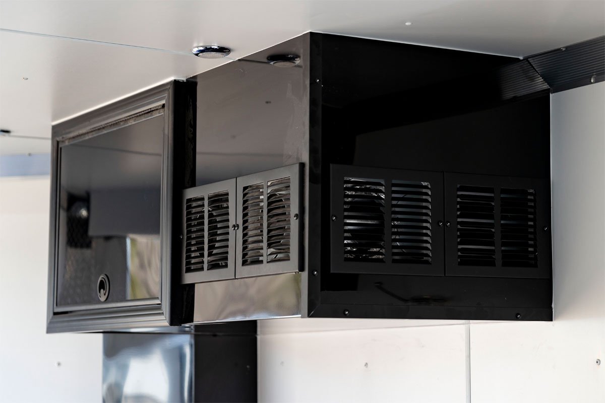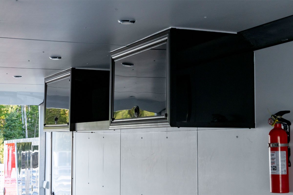 Maximize storage and avoid wasted space in your trailer - the generously sized 96" overhead cabinet is optimal for organization. |