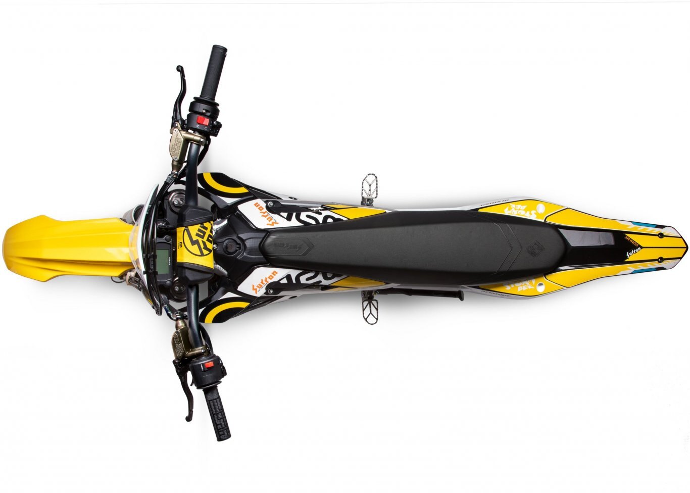 Surron's First Full-Size Electric Dirt BikeSurron™ is setting another benchmark in the electric off-road world with the 2023 Storm Bee F. With 22.5 kW of electric power in a full-size package, the Storm Bee is for savvy off-road riders ready to make the shift from gas-powered engines. Imagine no more oil changes, no spilled gas, no top-end rebuilds... and no noise. Just plug in, charge up, and ride. The lack of emissions and noise will keep the neighbours happy; the performance will keep you happy. With 120 km (75 miles) of max range and 520 Nm of torque, the 2023 Storm Bee F performs as well as it looks. Whether you're heading out to carve some single-trail or a weeknight of laps at the local MX track, the Storm Bee delivers a seat-of-the-pants riding experience like few other off-road bikes can. And it'll turn heads everywhere you go. The North American version of the 2023 Storm Bee F comes as an off-road-only model. Unique to the North American version, you'll receive both a headlight and number plate to cater the bike to your taste and riding environment. |