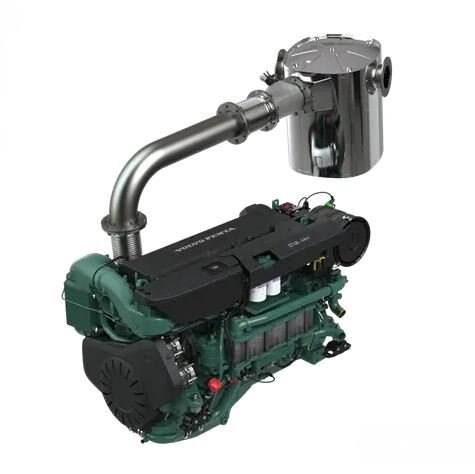 | Volvo Penta D13 MG is an in-line 6-cylinder, 12.8-liter direct-injected marine diesel auxiliary engine with twin-entry turbo and aftercooler. The SCR (Selective Catalytic Reduction) exhaust after treatment system is tailored for a perfect fit. The SCR unit, also a silencer, reduces noise by 35-40 dBA. Volvo Penta has been able to fulfil IMOIII and Inland Waterway Stage V exhaust emission targets while maintaining the same low fuel consumption. And thanks to SCR, the engine power output remains unaffected. D13 MG EU Stage V Marine. |