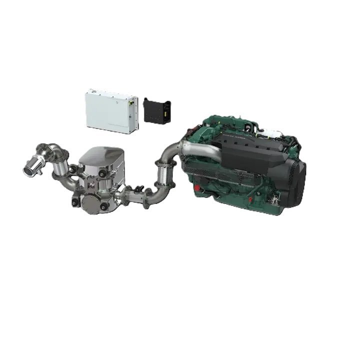 Volvo Penta D8 MH IMO III/EU Stage V Marine is a variable speed, in-line 6-cylinder, 7.7-liter diesel engine featuring common-rail fuel injection, an overhead camshaft, and a twin-entry turbo. This design contributes to efficient operating performance, along with lower emissions and reduced noise levels. It's engineered to handle high back pressure and high-sulfur fuel (1,000 ppm). The SCR (Selective Catalytic Reduction) exhaust aftertreatment system is designed for an optimal fit. The SCR unit, which also functions as a silencer, reduces noise by 35-40 dBA. Volvo Penta meets IMO III and Inland Waterway Stage V exhaust emission standards while maintaining consistent fuel consumption. Thanks to the SCR system, the engine power output remains unchanged.