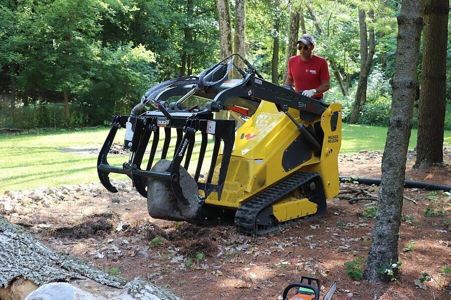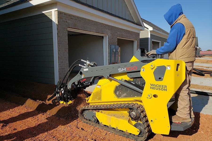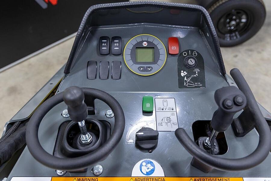 The SM120 uses Wacker Neuson's ergonomic mini-loader controls, while maintaining operator comfort features such as padding and a spring suspension for a better ride and added stability. The productivity package puts major workgroup controls literally at the operator's finger tips, allowing for function shifting on the fly. The high hinge pin of the SM120 provides a 5'3" bucket dump height and allows for easy loading into high sided trucks and dumpsters. The wide (11") track width provides among the lowest ground pressures on the market, minimizing incidental damage to the work site.