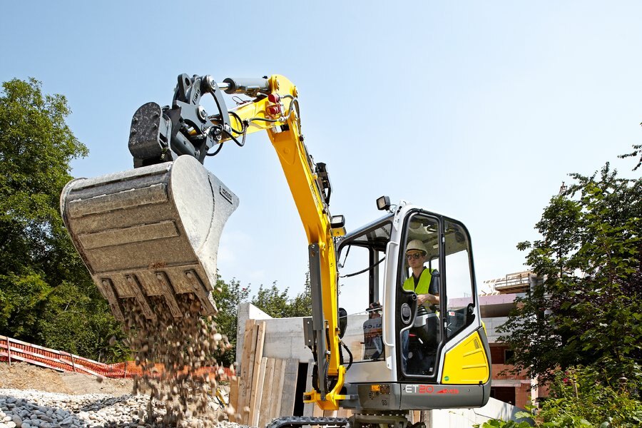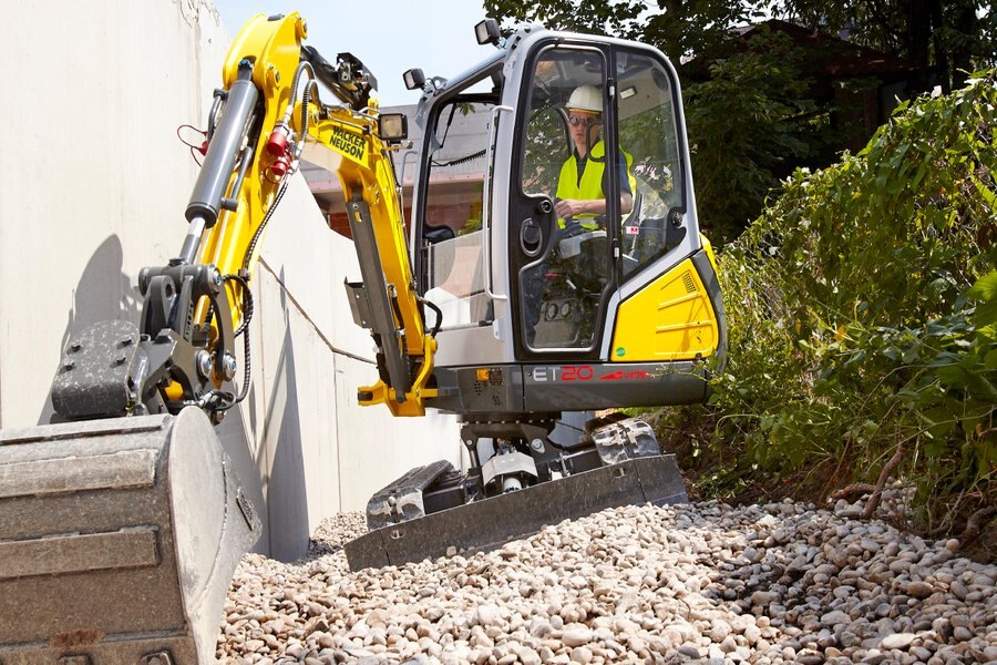- Whether for transportation or in confined spaces: Thanks to its compact design, the excavator can be easily transported to the next job site. And on the construction site, the machine can get anywhere quickly and easily, even in confined spaces - for high efficiency in every application.