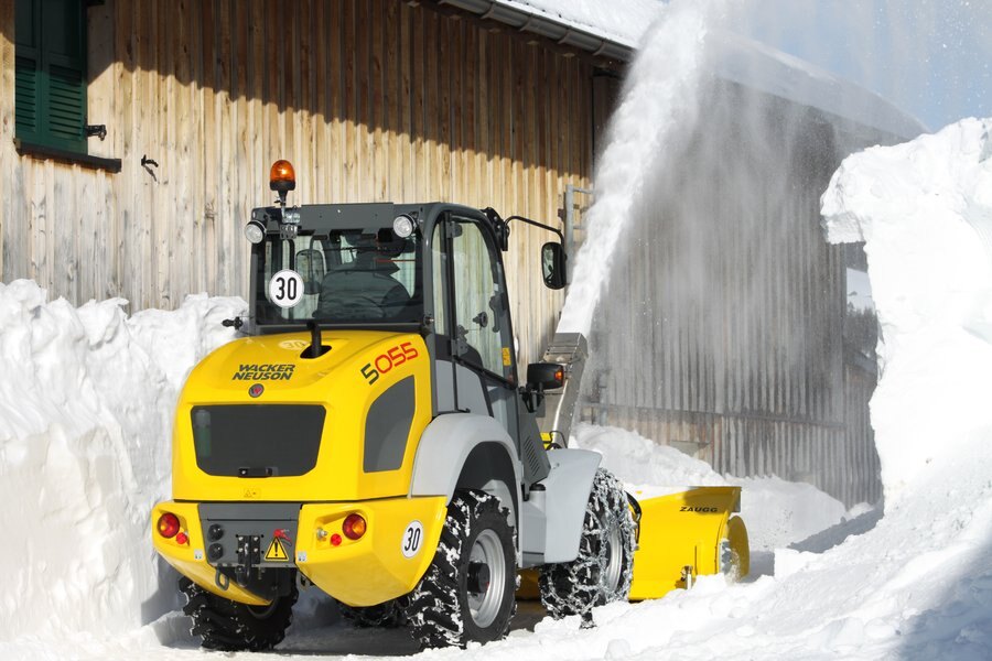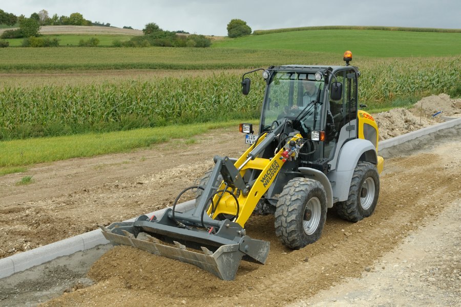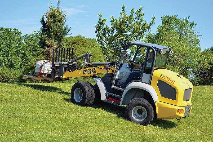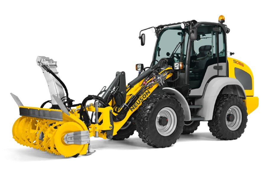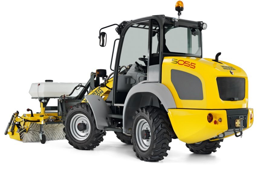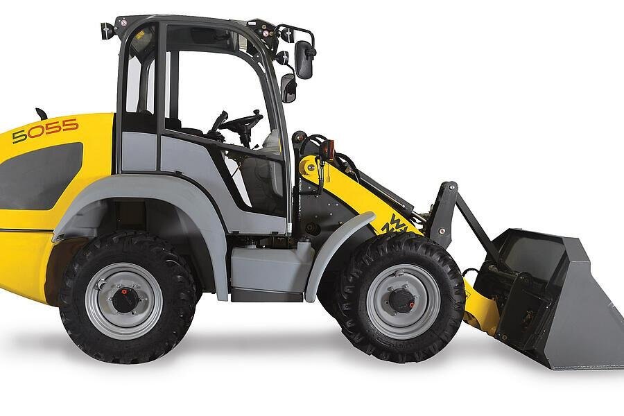The compact model 5055 is an all-wheel steer wheel loader and became known as the "550". The clearance width on this machine is under 1.58 m, so working in space-constrained environments is not a problem. The concept of the undivided frame provides excellent visibility of the front attachment area as well as the rear attachment area and simplifies the change of attachments immensely. The optionally available load stabilizer enables smooth and safe driving behavior even during handling operations, as vibrations of the loading equipment are damped.