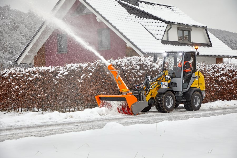 - The machine can be optionally equipped with high-flow, high-performance hydraulics. This enables the operation of front attachments that have a high oil requirement (such as a snow blower). This increases the machine's range of applications, as even compact machines can be used to operate sophisticated attachments.