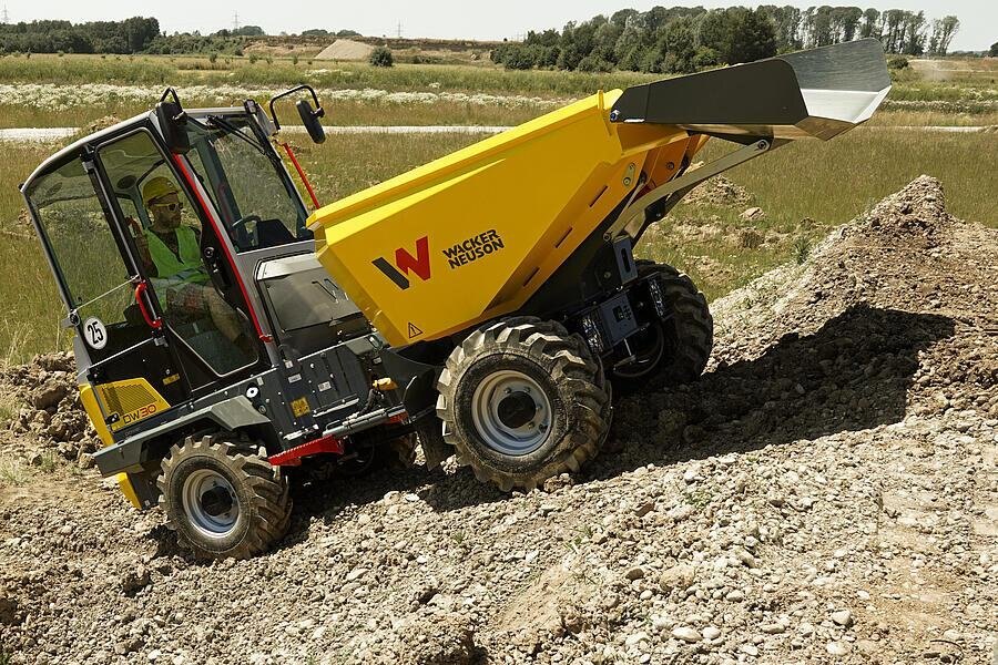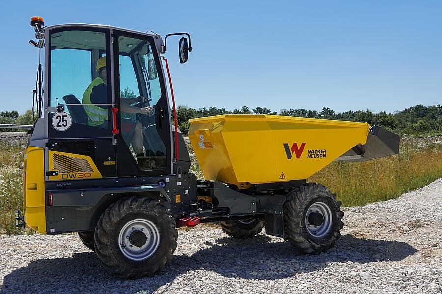 The DW30 provides the ideal harmonization of high safety standards and extensive equipment for many application options. Whether with a cabin or roll bar, with concrete skip or swivel tip skip: it is individually adaptable ex works, making it a real all-rounder for any construction site. It simultaneously provides a 3-ton payload at low dimensions, which means it can be efficiently applied, even in area that are more difficult to access. For the precise placement of materials in concreting works, the optional concrete skip is equipped with a pouring pan. The DW30 provides a very high level of safety equipment both as standard and across all available versions.