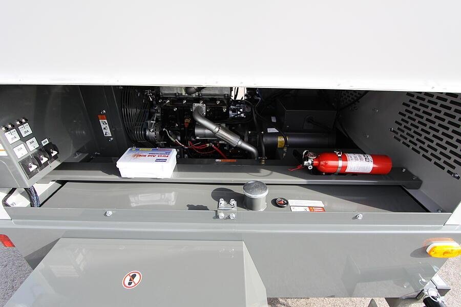 The standard five-section vertical mast light tower is power actuated, extending 7 meters and can rotate 360 degrees for optimum lighting flexibility. The wide body design features a proven engine, long run fuel tank and DOT trailer lights. The light bar design creates greater flexibility in directing the four light fixtures for greater light coverage on the jobsite. Choice between conventional 4 x 1100 Watt Metal Halide (MH) or energy-efficient 4 x 300 Watt LED lights. The wide body vertical mast light towers are perfect for remote applications including oil and gas worksites, mining, and industrial applications.